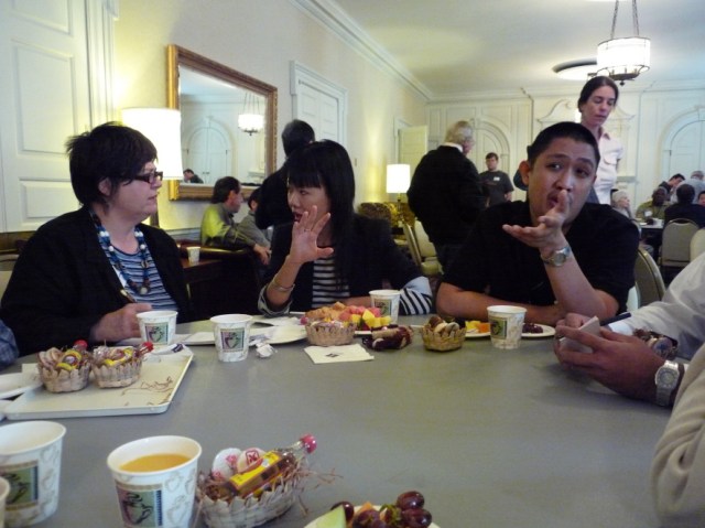 I was afraid of Day 2 because I would be on the stage as one of panelists for the first movie of that day, “Munyurangabo”, directed by Issac Chung, Korean-American director from Arkansas. The morning started very comfortably like the last meal before the execution. We met Roger and Chaz again in General Lounge on the 2nd floor of Illini Union, and we also had the chance to meet other people including Troylene Ladner, Carol, Randy Master, Michael Phillips, Vincent(he changed the clothe again… how many suits did he bring here?), and members of Ebert clubs. One of them, Sean, brought DVD of TV series “Firefly” for Roger, but Carol told me that Roger rarely watched DVDs brought by others with few exceptions. It’s like a lottery, I guess.