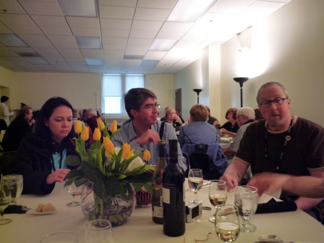 The Dinner place was Green Room of Spring Cultural Center, one block north of Virginia Theater. I met Jim Emerson(his tatoo on the right wrist was immediately linked to some tattoo removal ad in Ebertfest leaflet in my head) and had some talk with him about his website while walking to the building. During dinner, I briefly talked with Issac Chung as an immature critic and a gifted director. We both made our parents disappointed by getting interested in movies.