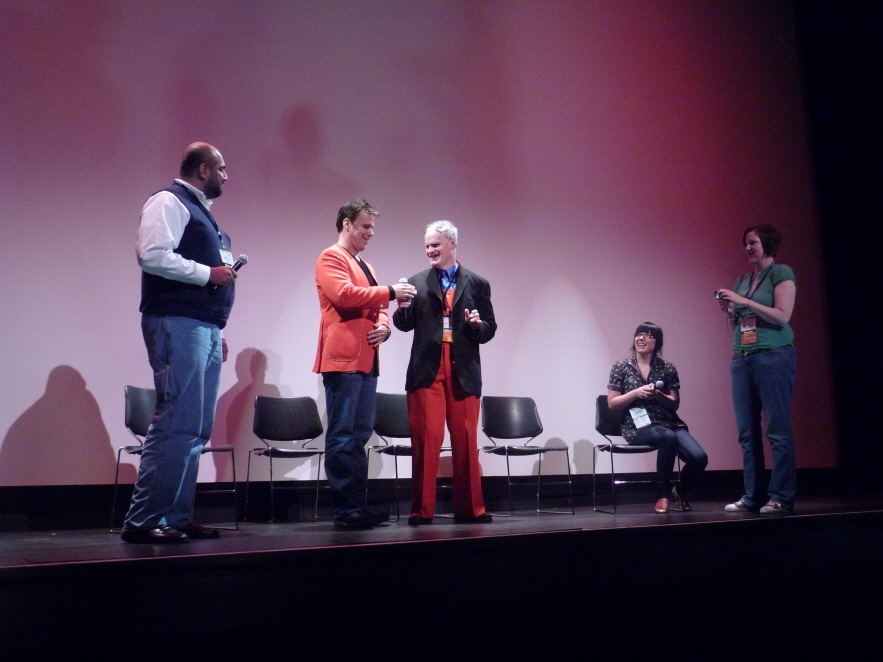 During Q & A, Burns told us about the tight budget for her work(she depended on several credit card). Even with dashing Richard Roeper, Vicent stole the show again and Roeper exchanged the suit with him. I also did it the day before. I will check out Vincent’s site. By the way, his helper Barbara introduced me her daughter to me before the showing. She told me later that her daughter also had poor eyesight because of the same reason. She was in a little better condition, and she seemed to be so well-adjusted that I did not recognize it. I was surprised to know that later at the post-fest party.