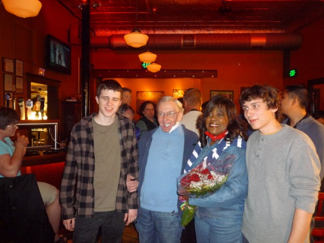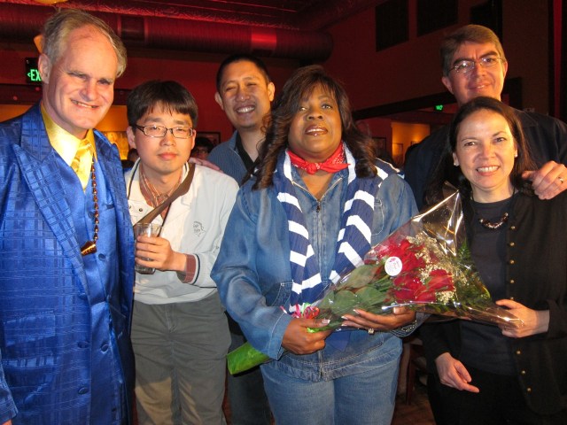 Many people had already come to Cowboy Monkey and pizzas were ready. Before 5 minutes were passed by, I came across Michael, and then met Gerardo Valero and his lovely wife Monica from Mexio City. This was the first time we had a real conversation and I became busy with responding while my topic were only Chicago and movies. And then, Roger(with Chaz and his nurse Milly as usual) came. The eyes of everyone were immediately focused on him and we were with him.