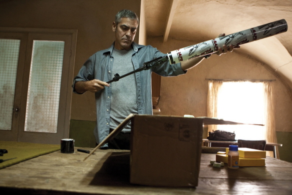The movie gives two names to its American hero(George Clooney), but whether his real name is Jack or Edward does not matter to us. His profession defines his identity, not his names. He is a competent killer and he can be quite heartless without any hesitation if the situation requires him to be, as shown in the opening scene at the snowfield in Sweden. It seems some Swedish guys are running after him for the reasons not clearly explained in the plot, and, as instructed by his boss, he goes into hiding in the rural area of Italy.