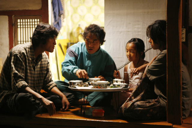 It is the testimony to the supporting actors’ talents that their characters are presented like ordinary people we may meet in the conservative Korean rural villages(Baek Soo-Ryeon is standout as a heartless matriarch who might have been the same as Bok-nam in her past). Their performances are plain but nuanced while the presence of tightly-knitted community is conveyed well through them. They are not wild-eyed villains; they are weak, ugly human beings whom you can find in any places where the weak are mistreated in the name of traditions, religions, or whatever excuses they have. They are at a loss when they suddenly realize the table is completely turned. The way the abusive relationship between Bok-nam and her husband is worked nicely into the payoff scene later is another interesting point I leave for you.