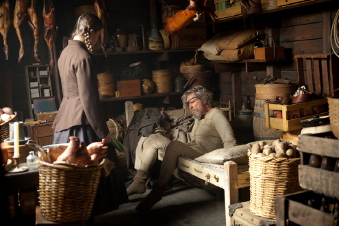 The Coen brothers are masterful storytellers. With their economical storytelling, they provide tense moments along with some humorous interludes like Rooster and Mattie’s encounter with the man wearing bearskin. They have been always good at setting the impeccably realistic backgrounds as the genres they handle require, and they excel at that again. Though the director Henry Hathaway did a good job in the 1969 version, Fort Smith and the wilderness depicted in that movie looks like the theme park on a sunny day compared to the realistic visuals of the remake version. For example, compare the shack sequence in the 1969 version with that of 2010 version. The latter is more violent, darker, and colder in its looks(it happens at night instead of under daylight). We get the sense that people really get hurt in its harsh world, and and the Coen brothers have some twisted fun with that.