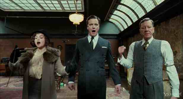 Considering the theatrical bravado of his character, Geoffrey Rush is an ideal choice for playing His majesty’s therapist(No wonder they broke some rules for sending him the script). His witty performance is heartfelt as the half of the special friendship in the story, and the dynamic between him and Firth on the screen is always captivating – whether it is the conversation between them or the climax sequence where they have to go through the crucial moment together. Quite unlike mean Red Queen we saw earlier in “Alice in Wonderland”, Helena Bonham Carter comes to us as a gentle, no-nonsense Queen with her warm performance. In the opening scene, you instantly know from her face that she is deeply saddened by her husband’s humiliation, although she does not say anything. There are also many notable actors in supporting roles, including Michael Gambon and Claire Bloom as King George V and his wife, Guy Pierce as selfish King Edward VIII, Timothy Spall as Winston Churchill, and Jennifer Ehle, who co-played with Firth in TV series “Pride and Prejudice”, as Logue’s wife.