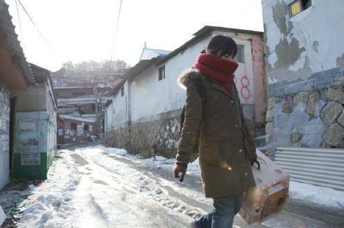 The daily life of Hye-wa, gracefully played by Yoo Da-in, is simple. When she does not work at the veterinary clinic, she tries to rescue abandoned dogs around the deserted places(There is a man who goes around that place for catching them and selling them to the restaurants). Recently, she is particularly interested in a dog with a serious medical problem, but it is not easy to capture it despite her efforts. And she is comfortable to work at the clinic. Her employer is an amiable guy, and he is an widower with a young playful son who loves to play some pranks on her. When they are together at his home, they look like a happy family.
