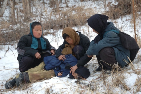 Although they are not affluent, there is enough compassion among the town people to show warm kindness to their miserable neighbors. One of the town people actually helps North Korean defectors smuggle in China with his truck. At one night, a gunshot is heard, and a desperate North Korean knocks on the door of Chang-ho’s house, and he begs for help to Chang-ho’s grandfather, who gives him a temporary shelter and some food. And Jeong-jin is becoming a more frequent visitor to Chang-ho’s home.