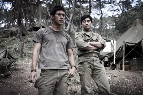The director Jang Hoon successfully makes a solid war movie. The battlefield scenes are dirty, bloody, chaotic, exhausting, and dynamic while holding our attentions on the ground. At first, with quick cuts and handheld camera, the movie gives the typically disorienting atmosphere of battlefield we have been accustomed to since “Saving Private Ryan“(1998), and then it begins to look at the battle scenes with smooth, steady camera move with the confident direction as if we ourselves were getting used to what’s happening around the characters. Jang Hoon does not lose human dimensions amidst lots of explosions; reminiscent of that famous battlefield sequence in “Path of Glory”(1957), every step forward is really hard for the soldiers shown on the screen.