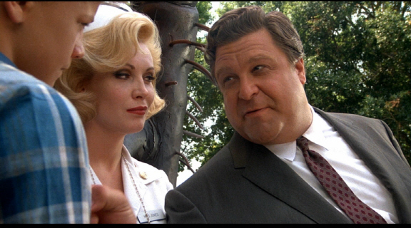 With his pleasant performance, John Goodman presents us an avuncular dreamer with ever-present optimism and jolliness. He is a movie business man belonging to the lower strata of Hollywood, but he tries to sell his films with imagination and passion. Plus, he is a good salesman with skillful showmanship; he will eventually talk you into watching his movies even if you know his movies are more or less than average B-movies.