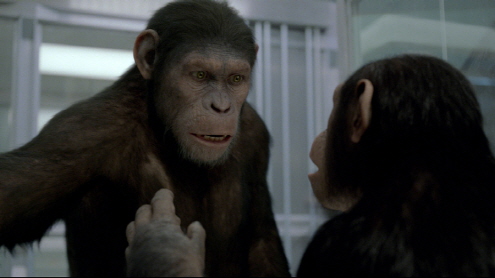 While keeping impressing Will with his rapidly growing intelligence, Ceaser has a happy time at Will’s home with the occasional visits to the redwood forest outside San Francisco. Soon he recognizes his lonely position as the outsider between the human beings and the apes. In Will’s household, he is an equal family member, but he is still regarded as an animal with sharp teeth to the people outside. Because of the unfortunate incident between Will’s father and the aggressive neighbor in next door, Ceaser is sent to the facility where he is abused by the sadistic guards and ostracized by the other apes who instinctively sense that he is different from them.