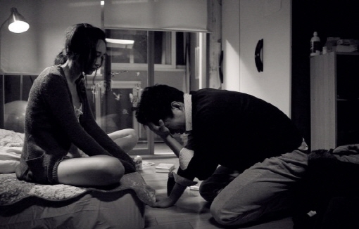 Late at night, in inebriated state, Seong-jun suddenly runs away from his bewildered juniors. He goes to the apartment where his former girlfriend lives. She does not welcome him much, but soon they have a talk with beer at her small place, and Seong-jun, still drunk, keeps telling her he is sorry with pathetic self-pity. It sounds embarrassing, but it is funnier than you think, and the audiences around me frequently giggled while watching how they eventually share the bed at that night and…