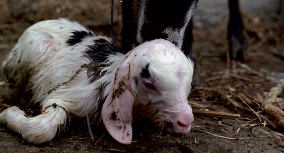 We later see the old man dying on his bed, surrounded by the goats accidently released from the stable. His funeral is soon followed, and a baby goat is born. Like any newborn kids, it has a sticky beginning right after coming out of its mother’s womb. Still covered with mucus, it struggles to stand on the ground with its four feeble legs. It is not so easy at its first trial, but it eventually succeeds, while it looks less sticky than before.