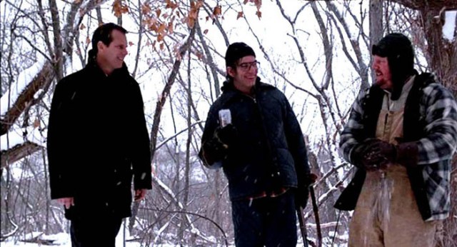 That fateful incident happens during the afternoon on New Year’s Eve. After visiting the grave of Hank’s deceased father at the town cemetery, Hank, his brother Jacob(Billy Bob Thornton), and Jacob’s friend Lou(Brent Briscoe) are on the way to their homes together in Jacob’s pickup truck. Suddenly, a fox, with a hen in his mouth, runs across the road in front of the truck, and they decide to go after that fox which runs into a nearby forest. They fail to capture it, but they stumble upon something more tempting than that in the middle of the forest.; they find a small plane which crashed into the forest, and, besides the dead pilot, its cargo is a bag containing 4.4 million dollars in cash.