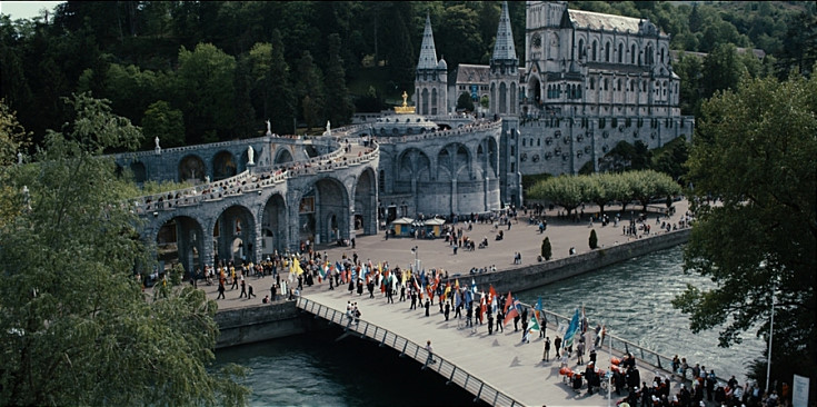 None the less, the people still have been coming to Lourdes with the hope not so different from the one we have when we come to Las Vegas, although the chance of getting a jackpot is higher than the chance of getting healed by Lourdes water. Whether this is absurd or not, it is good for the town. Around 5 million people come to this small town with the population of 15,000 every season, so the mass pilgrimage has become its main industry. In one brief shot in the film, the people gather together for a group picture with the Rosary Basilica(built in 1899) behind them, and I could not help but think of the castle in Disneyland. Minus their hopes and beliefs, they are more or less than the tourists visiting a theme park.