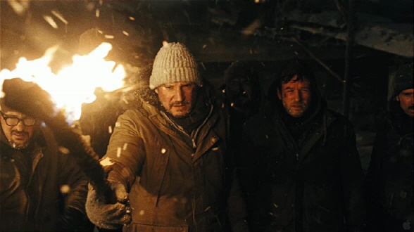 They are the employees returning from an isolated oil drilling rig in some remote region of Alaska. The job of Ottway(Liam Neeson), a professional hunter, is protecting other workers from the attacks from wild animals in that area. He is very good at what he is paid for; when he sees a wolf suddenly running toward the workers, he instantly shoots it with cool, precise professionalism. To him or other guys, this place is like the dead end of their lives, and we even see him attempting suicide with his rifle at one moment.