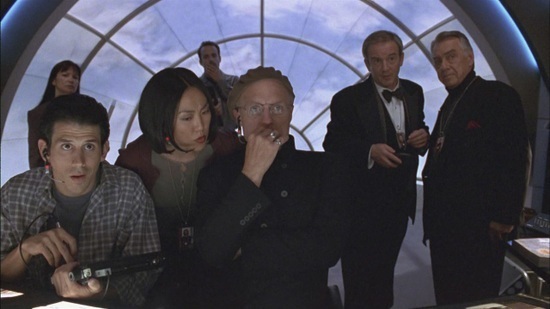 Several reviewers said that the movie never fully presents how sinisterly Truman’s world works(I heard Niccol’s first draft was darker while intended as a thriller), but, as the creator/father of this world who presides over the show at the control station above the sky, Ed Harris subtly suggests the sinisterness behind Christof and his show while never looking like a villain on TV screen. Christof casually talks about his show in his exclusive TV interview, but he never utters any words revealing its true nature. When Sylvia protests to him on the phone in the middle of the interview, he justifies his show with the plausible argument that he gives Truman the world better than the one outside. Christof may care about Truman as Big Daddy(Do I have to tell you what his name signifies?), but the show always the first priority to him, and he is willing to continue it by any means necessary, though the rating is never higher than before when Truman rebels against his domination.