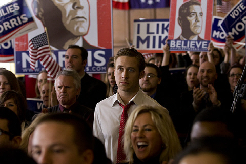 Stephen Meyers(Ryan Gosling) is the junior campaign manager working for Mike Morris(Geroge Clooney), the incumbent governor of Pennsylvania who is the leading candidate in the Democratic primary. He is pretty popular with his openly liberal progressive view which would make Barack Obama look like a conservative GOP(his campaign poster is clearly derived from Obama’s, by the way), but his status as a candidate has not been completely clinched yet. If he loses in Ohio Primary, it will be a major setback in his campaign, and the senator Thompson(Jeffrey Wright), who can significantly affect the primary with his 356 delegates, may choose to side with Morris’ major rival.
