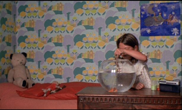 There is the scene featuring a girl left in the apartment by her parents just because she insists on taking her favorite handbag to the family dinner at the restaurant, and it made me chuckle a lot for its cheerful black comedy. She is pissed off, so she locks the front door and drops the key in her fish bowl, but she gets hungry as the time goes by. Her solution is direct and creative; using her dad’s bullhorn, she shouts to her neighbours in the apartment building that she is hungry, and then they help her in another amusingly creative way. If she were older, she would think for a while about how the neighbours will think about her parents after this funny happening, but that does not matter much to a girl at her age, especially when she is starving and the basketful of food(minus a bottle of wine thanks to one adult’s thoughtful intervention) is delivered right in front of her.