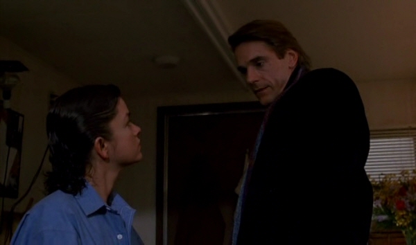 It is a shame that the movie mainly uses Bujold’s character as a plot device during the second half. Considering how Geena Davis’ performance as the lover of the doomed hero in “The Fly”(1986) was important in making its crisis and subsequent climax work with devastating dramatic effects, that’s a big disappointment. The movie also never digs deep into an interesting contrast between Claire and Cary(Heidi Von Palleske), a fellow doctor who is officially Elliot’s girlfriend but would not mind much about sleeping with Beverly. At least, von Palleske and Irons have a good scene where Cary dances together with the twins at their apartment while “In the Still of the Night (I’ll Remember)” by the Five Satins is played.