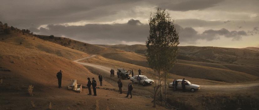 As the cars goes through the darkness descending upon the vast rural landscape of Anatolia, the movie looks at the people inside the vehicles more closely. There are a prosecutor(Taner Birsel) who leads the investigation, a police chief(Yilmaz Erdogan) who is getting impatient with the vague memory of his suspects, and a doctor(Muhammet Uzuner) who will examine the body not found yet. They are accompanied with a courthouse clerk, a police officer, drivers, soldiers, diggers with shovels, and, of course, two handcuffed suspects.