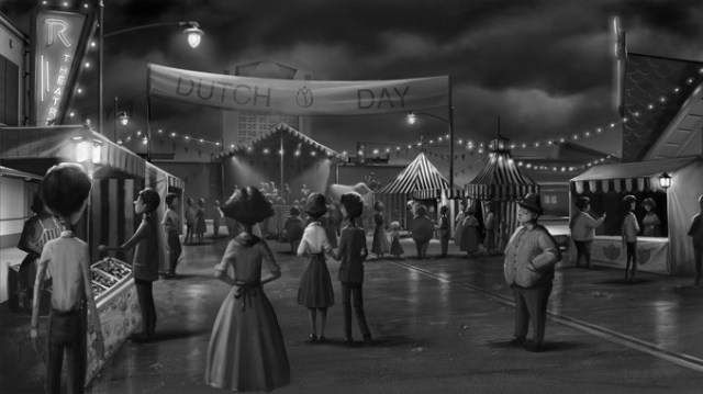 The story is a humorous parody/homage of the Frankenstein story. Again, our hero’s name is Victor Frankenstein(voiced by Charlie Tahan), but, this time, he is a smart little boy living with his worrisome parents Mr. and Mrs. Frankenstein(voiced by Catherine O’Hara and Martin Short, respectively). They live in a town named New Holland, and it looks like a grim version of that colorful suburbia in “Edward Scissorhands”(1990). Its grotesque residents look as gloomy and pale as their town, and, when the town festival is held later in the story, they do not look like having a fun. The town song is sung so cheerlessly and joylessly that you may be surprised to see that nobody kills himself during the performance.