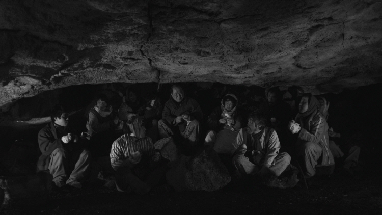 Handling his story with such formal austerity, the director/screenplay writer O. Meul, who is a Jeju native, does not lose the human dimensions inside the story. Even when they are under the dire circumstance, silly but human humor comes along with the village people’s hopeless plight, and I was amused by the scene which shows them coming into a big hole one by one while the hole becoming more crowded. There is also a wonderful moment in which the camera steadily moves across in front of the village people in the dark, oppressing cave, and I was impressed to learn later that they really shot the scenes at a real cave; despite the technical difficulties, the result looks as smooth and poetic as a low-budget film can possibly be.