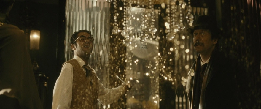 small_chickenwithplums06For their picturesque story, the directors Marjane Satrapi and Vincent Paronnaud shot the film at the Babelsberg Studios in Berlin to create their beautiful world of memories and fantasies. I have to mention a fantastic moment when the cigarette smoke from Nasser-Ali’s dying mother flies away from her bed and then hovers above her grave later. This surely looks unrealistic, but the movie has enough imagination to make it feel real even though it looks outrageous(this scene even has a weirdly looking savant appearing out of nowhere and explaining that the smoke is her soul), and we are amused by it rather than disbelieving it.