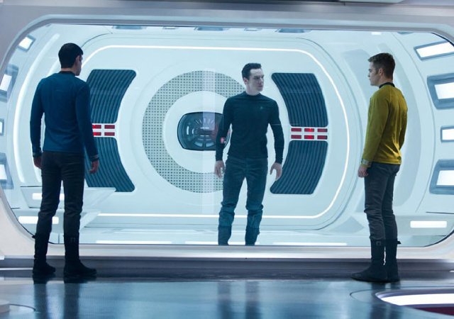 The mission is eventually accomplished, and all of the Enterprise crew manage to get out the planet safely, but Kirk violates the primitive directive for the eleventh hour rescue of Spock. Mainly due to Spock’s inflexible sense of principles, he is immediately demoted to the first officer, and he is pretty pissed about being ‘betrayed’ by Spock, but there is not much time for reconciliation because they are soon hurled into a big threat thrown upon Starfleet. A rogue Starfleet officer John Harrison(Benedict Cumberbatch) has declared a personal war against Starfleet with the shocking terror incident in London, and this ruthless guy promptly strikes his targets with a sudden ambush on the emergency meeting at the Starfleet headquarter in San Francisco.