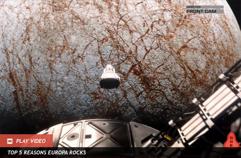 You probably remembered that the scientists reported the existence of water below the thick ice plate of Europa, Jupiter’s fourth largest moon, in November 2011, and the movie was inspired by that real-life science news. Because the existence of water implies the possibility of life-forming environment, a special space mission was eventually initiated in the future not so far from the present, and then six astronauts embarked on their long journey to Europa with their big spaceship aptly named Europa One.