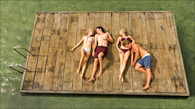 Based on Doris Lessing’s novella “The Grandmothers”, and the director Anne Fontaine made a darkly interesting domestic drama with her co-screenplay writer Christopher Hampton, who won an Oscar for his work in “Dangerous Liaisons”(1988). The movie mostly depends on the mood and interactions between its main characters in its languorous pace, and the gorgeous shots of beach and sea on summer days work as the nice contrasting backdrop for its odd, disturbing romance tale. There is a particularly impressive overhead shot looking over the main characters resting on a raft floated alone on the sea, and it tells us a lot about the isolated nature of their intertwined relationships.