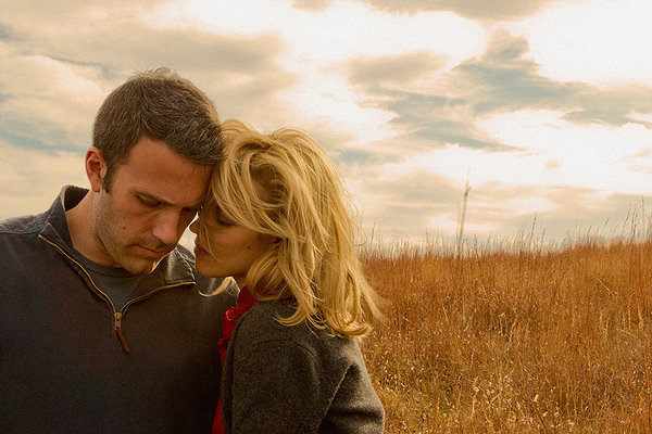 Terrence Malick’s new film “To the Wonder”, an impressive but elusive visual poem, is mainly a meditative observation on one rocky romantic relationship between Neil(Ben Affleck) and Marina(Olga Kurylenko). Like any couples, they feel happy and joyous as they fall in love with each other, and we see them having a good time in France. They walk together around the streets of Paris, and then they have an ethereal private time on the beach near the Mont Saint-Michel Abbey on one gray day.