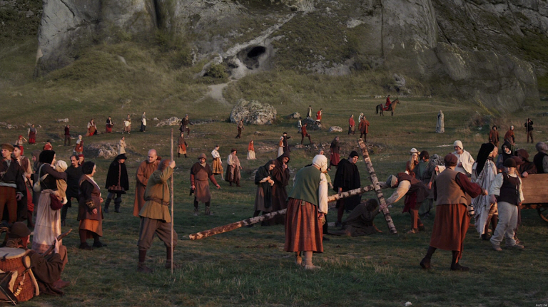 It also gives us some nice insights to how Bruegel planned his work on the painting, and there is a terrific moment when he holds his view in suspension for a moment. He signals to stop the windmill, which is more like God’s windmill/wheel in his artistic view, and everyone is held in their respective spots as soon as it stops. Although we clearly see some actors moving a little bit in this scene, it still feels spellbinding none the less.