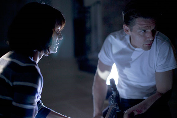 This still looks a bit like a good thriller setting at least, but then the movie becomes more hopeless to my disappointment. The house becomes dark when electricity is cut off(has it ever occurred to them that leaving the lights on is more strategically advantageous to them?), and the camera busily goes around the characters without generating any tension, and the movie drones on as the time is running out for them. Ethan Hawke and Lena Headey, who plays James’ wife, are good performers, but there are not many things they can do for their bland characters, and the same thing can be said about Max Burkholder and Adelaide Kane, who are also stuck with bad dialogues and sketchy characterization.