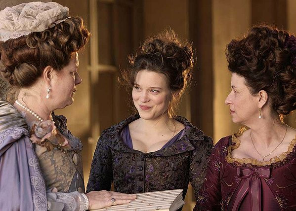 The movie was actually shot in the Versailles, and it gives us an interesting perspective on its place and time as Sidonie moves around the place. The palace looks grand and splendid with its wide gardens and sumptuous interior designs, and the nobles looks good in their lavishing clothes, but there are also the ungainly sights hidden around the palace. The living places of Sidonie and other servants look plain and sparse, and only notable thing in Sidonie’s room is an expensive clock to help her keeping with her daily routine exactly as demanded.
