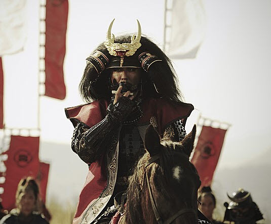 Meanwhile, we also see what is going on the other side. Although they are alarmed to learn that their arch-nemesis is now back in action, most of the Japanese admirals are confident that they will finally defeat Admiral Yi in this time, and Kurushima Michifusa(Ryoo Seung-ryong) is particularly eager for that due to his personal matter with Admiral Yi. Right from his first pompously sullen appearance, the movie pulls out all the stops to show this aggressive general as a formidable badass dude, and some of Japanese generals are understandably not that pleased to be with him, like some of Korean generals are not so happy with Admiral Yi.