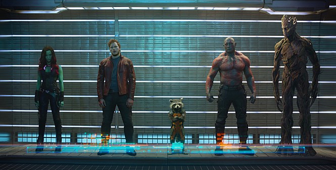 James Gunn, who began his career with B-horror movies produced by Troma Entertainment and then made a directorial debut with amusingly slimy(and disgusting) horror comedy film “Slither”(2006), frequently throws humorous moments into his movie even when the situation becomes more serious for his oddball characters, and most of them work although there are a few moments which look downright silly. It is apparent that his main actors have lots of fun with their characters, and the rapport between them is more effective and interesting than what we saw from the cast of “The Avengers”(2012).