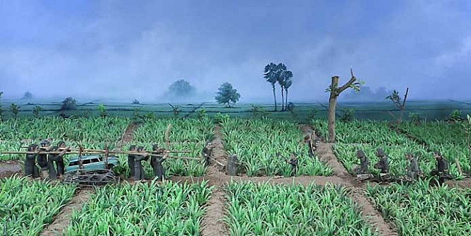 His pieces of memories are depicted through the admirable simplicity of his dioramas full of small and big details, and the resulting effect is as evocative as Ari Folman’s “Waltz with Bashir”(2008), a memorable animated documentary about Folman’s personal journey into his repressed memories involved with the 1982 invasion of Lebanon. These simple clay figurines in Panh’s dioramas are mostly in still positions, but, through their faces and bodies, they tell so much more about the horrors and tragedies during his days at the labor camp than mere words or conventional visual images like photographs.