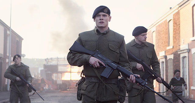 In their first mission, all Gary and others have to do is protecting the police officers who are about to go into a house in the Catholic area and arrest someone in the house, but the soldiers and their commander Lieutenant Armitage (Sam Reid) soon realize that they are in a difficult situation way over their head. Right after they arrive at the site, the news of their arrival is quickly spread around the neighbourhood through trashcan lids repeatedly hit on the pavement, and the resulting noise begins to sound more like ominous war drum as more people are gathering around the site – and they are certainly not so pleased about what is going on in their territory.
