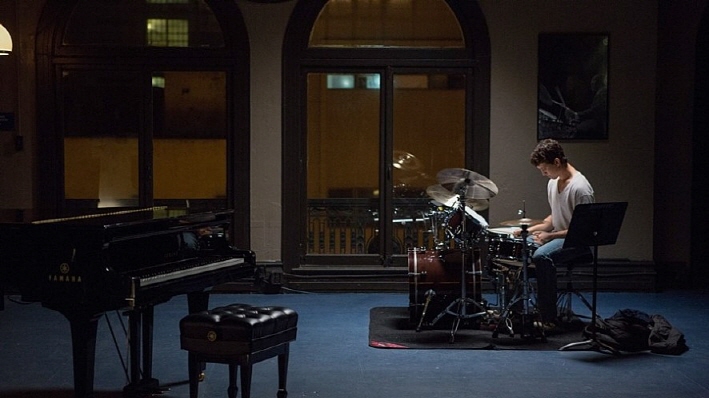 In case of Andrew Neiman (Miles Teller), a 19-year-old student of the Shaffer Conservatory in New York, he is ready to follow his aspiration to be a great jazz drummer like Buddy Rich, and the opening scene of the film shows him going through his usual night practice at the school. As the camera looks closer to his ongoing practice, it is revealed that someone is watching him while not noticed by him, and it turns out to be none other than Mr. Terence Fletcher (J.K. Simmons), the most notorious music teacher at the Shaffer Conservatory who is very infamous for his fearful perfectionism and his barbaric treatment of students.