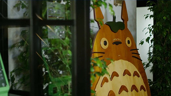 Their studio building looks plain from the outside, but it is a comfortable workplace you may want to look around just for appreciating its peaceful environment. The building has a nice rooftop garden where they can have some rest, and there is also a cute cat which frequently appears throughout the film (it seems to be a pretty smart cat, for we are told that it never annoys Miyazaki or others when they are busy). When the work time is over, Miyazaki goes to his private atelier, which looks rather plain but is decorated with a couple of things to amuse you if you are a fan of Miyazaki’s works.