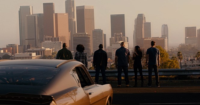 The main cast members effortlessly fill their respective roles with the convincing sense of rapport they have maintained for years outside and inside the screen; not only they know and understand their characters well to the core, but also they clearly enjoy working with each other. While Vin Diesel and Paul Walker function as the solid center as usual, Tyrese Gibson and Ludacris give us some good laughs during their comic moments, and Dwayne Johnson relishes his own moment with gusto around the bombastic climax unfolded in the middle of the downtown area of LA. Michelle Rodriguez brings enough spunk into her character although her character’s personal trouble is the least compelling element in the film, and the same thing can be said about Nathalie Emmanuel, who gives us a nice impression of smart, resourceful woman while looking as sexy as demanded (how the camera looks at female bodies in the film is pretty close to Michael Bay’s films, by the way). While Djimon Hounsou is wasted in his bland, thankless villain role, Tony Jaa functions as one of Jakande’s henchmen, and Jason Statham is suitably cast as your typical hardcore villain. In case of Kurt Russell, he enjoys every minute of his appearance, and the way his scene-stealing performance flips between humor and toughness is simply a delight to watch.