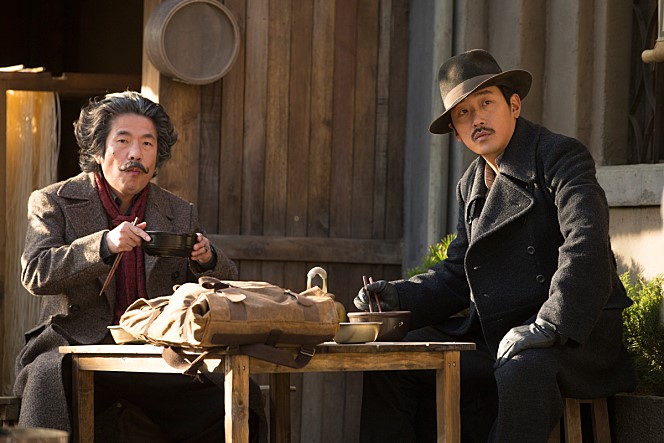 Everything seems to be ready for the assassination team members when they leave for Seoul after holding a small ceremony for their mission (watching them being photographed along with their written resolutions, you may be reminded that they are regarded as terrorists by their enemies), but there is a problem which will jeopardize the whole operation. A spy inside Kim Koo’s inner circle informs Japanese authorities of the assassination plan and then hires a Korean guy nicknamed Hawaii Pistol (Ha Jeong-woo), one of the most fearful bounty hunters in the town. Hawaii Pistol accepts the request with no hesitation because he is told that his targets to be eliminated are traitors, and he also leaves for Seoul with his loyal sidekick Old Man (Oh Dal-soo).