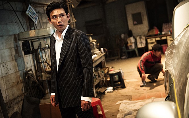 Hwang Jeong-min plays Seo Do-cheol, a tough, simple-minded cop who is in the middle of a sting operation when he strides into a shady used car shop during the opening sequence fluidly following his movement. After arresting a bunch of auto theft gangs later, Do-chelo and his fellow cops come to acquire the information about a bigger target to catch, and they immediately move onto the next step. When everything is set during one of the major action sequences in the film, Do-cheol and his colleagues immediately make a surprise attack on their suspects, and we get a nice chase scene when Do-cheol runs into a maze of containers for catching a couple of suspects.