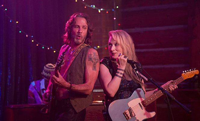 Meryl Streep, who again delivers another commendable performance to be added to her great career, plays Linda “Ricki” Rendazzo, a middle-aged lady who still does not give up her dream despite her struggling status in life and career. While she released her first album a long time ago, her music career in California has been virtually going nowhere since that, and she barely supports herself by working at a local supermarket when she and her band do not perform at a local bar during many evenings. She and Greg (Rick Springfield) and other band members mostly play others’ songs as demanded, but they have a good time together during their routine gigs, and this spunky lady surely knows how to excite and entertain her audiences.