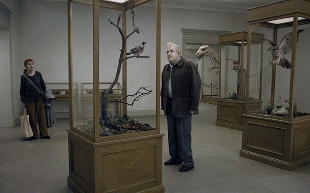 Besides being shown at the 2015 Ebertfest, the movie received the Golden Lion Award at the Venice Film Festival in last year, and it was recently chosen as Sweden’s submission to the Best Foreign Language Film category of the 2016 Academy Awards. Its dark laughs mercilessly penetrate into human nature, but those laughs come with human empathy and insights, and the last scene of the film somehow feels optimistic under its melancholic surface. We are basically alone in each own individual state of mind, but we are not alone at least in that aspect – and life goes on anyway as we are bumping with each other.