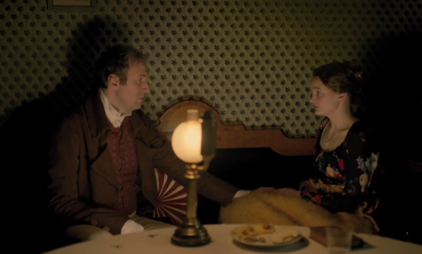 However, when Henrietta shows him her willingness to be his suicide partner, Heinrich finds himself being reluctant about what he has been openly wishing for, and the movie shows a wry sense of understated humor as he tries to deal with this unexpected situation. He rejects her with a selfish excuse at first, but then he comes to have a sort of relationship with her, and there is a dryly funny scene when they happen to stay at an inn for one night along with literary critic Adam Müller (Peter Jordan). Heinrich is so sensitive about how he and Henriette look in front of Müller that their dinner soon becomes very awkward to say the least, and it ultimately ruins what they initially planned for the next day. Maybe he really wants to die as he says, but Heinrich wants that to happen in a way he prefers, so there comes another comic moment when he reaches for a more preferable option.
