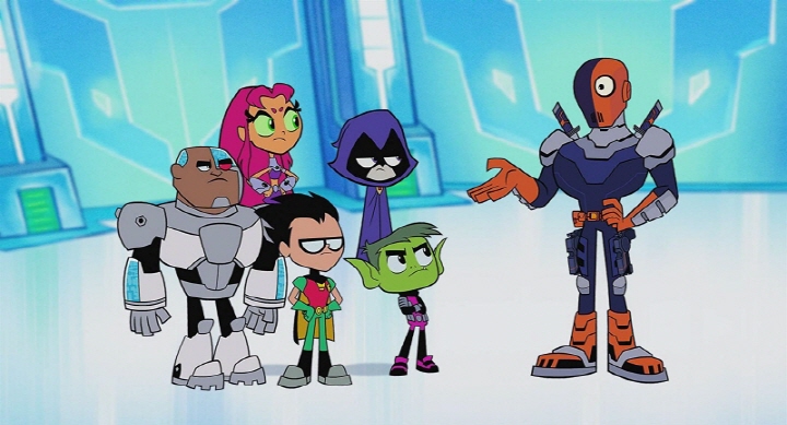 After hurriedly rectifying the situation, the Teen Titans go for a less drastic way instead. For being as famous as Superhero and other superheroes, they need a powerful opponent to distinguish them, and they fortunately have an ideal guy for that. There is a new villain named Slade (voiced by Will Arnett, who also co-produced the film), and this guy, who looks like a cheap version of Deadpool, is about to execute his diabolical plan involved with some precious mineral, which he recently succeeds in stealing despite the efforts of the Teen Titans.