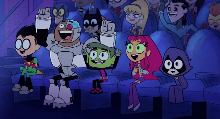 During the opening sequence featuring a villain attempting a robbery of massive scale, we are introduced to the five colorful main characters of the film: Robin (voiced by Scott Menville), Beast Boy (voiced by Greg Cipes), Cyborg (voiced by Khary Payton), Raven (voiced by Tara Strong), and Starfire (voiced by Hynden Walch). Eager to prove themselves via their respective superpowers, they willingly fight together against that villain, but, alas, that villain is instantly defeated by other superheroes including Superman (voiced by Nicholas Cage) while they are a little too occupied with presenting themselves via their theme song, and they are certainly disappointed when their efforts are not recognized much in the end.