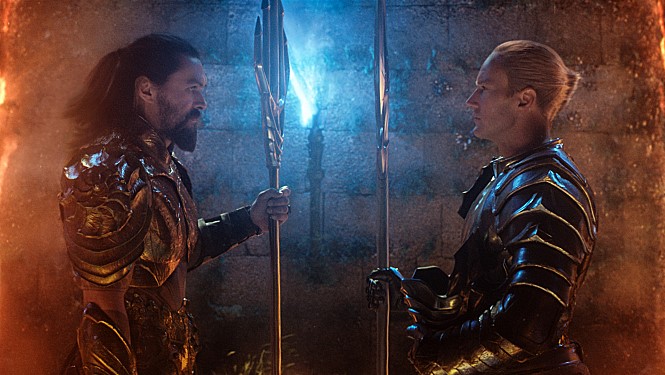 Despite all these fun stuffs presented on the screen, the movie frequently stumbles and trudges as losing its narrative pacing, and the weak aspects of the screenplay by David Leslie Johnson-McGoldrick and Will Beall, which is based on the story by Beall and his co-writers Geoff Johns and director James Wan, become more evident. As trying to do too many different things together during 143 minutes, the movie eventually comes to lose its balance and focus especially during its last act, and I felt exhausted instead of enthralled when the movie went all the way for lots of flashes and explosions during its obligatory climactic action sequence.