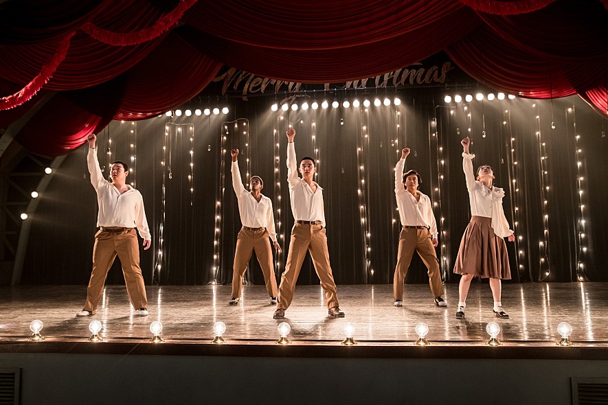 However, fortunately, he comes to find three candidates good enough for him. While Byung-sam (Oh Jung-se), a civilian who happens to be stuck in the prison camp by misfortune, impresses Jackson a lot with his strenuous dance, Xiao Fang (Kim Min-ho), a chubby Chinese prisoner with some health problem, shows considerable agility in his dance movements, and Pan-rae (Park Hye-su), a young South Korean girl who often come to the prison camp along with other pretty South Korean women ready to entertain and attract American soldiers, easily joins the group because she can speak not only Korean and English but also Japanese and Chinese.