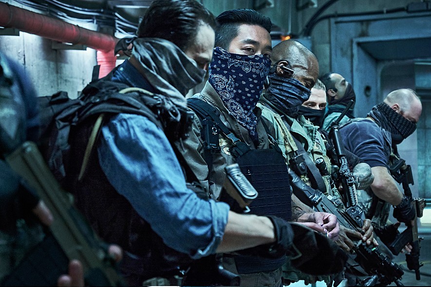 Because the highly sensitive nature of the operation, Mackenzie hires a group of mercenaries from some private military company, led by a South Korean guy named Ahab (Ha Jung-woo). Hiding inside a big underground tunnel/bunker located somewhere in the demilitarized zone (DMZ) between North and South Korea, Ahab and his group patiently wait for their target to arrive, and Ahab, who is commanding his team from his makeshift situation room, is quite confident that he and his group will succeed as usual. Once their target, a top-ranking North Korean general willing to give an important piece of information for his defection, is extracted from the operation site, they will instantly hand the general over to Mackenzie while getting paid well as promised, and she will then use the general’s information for increasing the chance of re-election for the US President.